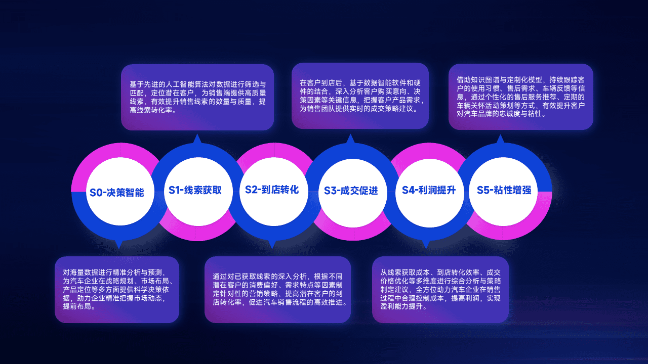通过拓宽潜在客户来源、、、优化线索分配并提高到店转化率,,以增强销售效率。。同时,,,利用线索数据不断优化分析模型,,,有效提升转化率,,扩大营销影响力。。。